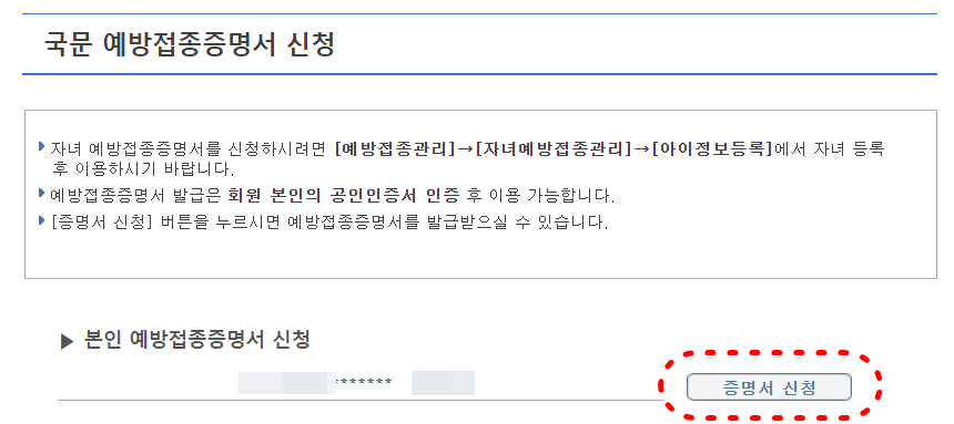 4) 국문 예방접종증명서 신청