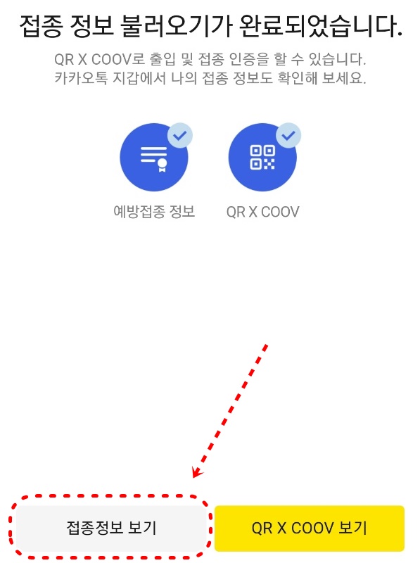 2. 접종 정보 불러오기가 완료가 됩니다. 아래의 접종정보 보기를 눌러줍니다.