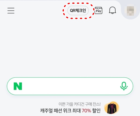 1. QR체크인을 눌러 들어가 줍니다.