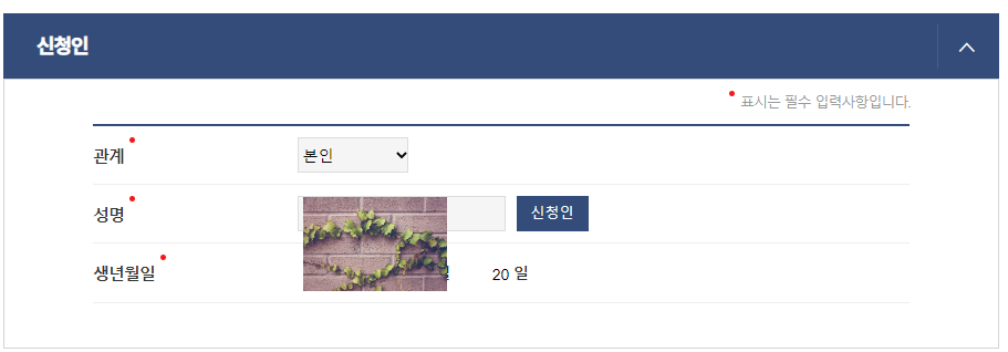 - 위에서 이야기 했듯이 신청인 관계란에 "본인"으로 체크 하셔야 합니다.